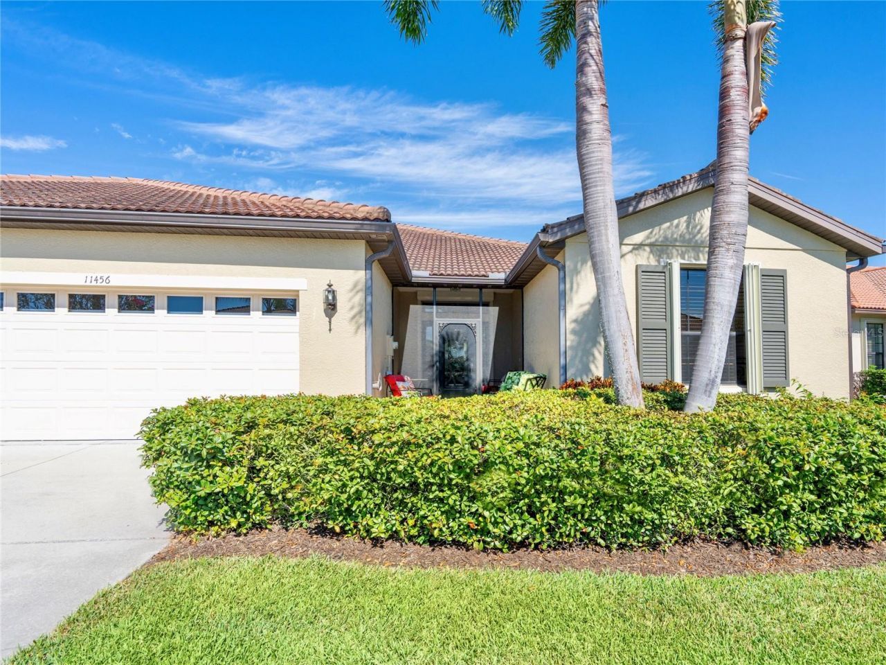Experience maintenance-free, resort-style living in this beautiful 3-BEDROOM PLUS DEN, 2,102 sqft home in the premier 55+ community of Venetian Falls! Conveniently located just minutes from the sunny beaches, shopping, dining, and Venice's historic district, this Giovanni paired villa offers spacious rooms with CROWN MOLDING, PLANTATION SHUTTERS, CENTRAL VACUUM, and EASY-TO-USE WHOLE HOUSE STORM PROTECTION. Step through the SCREENED FRONT ENTRYWAY into a wide foyer illuminated by a BEVELED GLASS DOOR with sidelights and an overhead transom window. The kitchen features UPDATED STAINLESS-STEEL APPLIANCES, solid-wood cabinets with decorative trim, dining bar, and is open to the leisure area as well as a DINETTE surrounded by windows. The WALK-IN PANTRY provides ample storage space for staples, appliances, and platters. The PRIMARY SUITE, located at the rear of the home for added privacy, includes two closets (one a large walk-in) and a spacious bathroom with corner vanity with dual sinks, private water closet, linen closet, and a walk-in shower. At the front of the home, the guest bedrooms and bathroom create a PRIVATE RETREAT FOR VISITORS and the DEN is a versatile space for a quiet sitting area or office. Enjoy the outdoors on the lanai while you soak in the ambiance of the SERENE PRESERVE as a backdrop. This screened area is wonderful for grilling, dining, and lounging in the sun or shade. Buttoning up the property is easy convenient ACCORDION STORM SHUTTERS for the windows, plus REMOTE-CONTROLLED SHUTTER for the lanai, and ROLL-DOWN SHUTTER for the front door. A WELCOMING PAVERED PATIO as you arrive at the front entryway adds to the lovely curb appeal of this property. Venetian Falls offers exceptional community amenities, including a resort-style clubhouse with a heated lap pool and spa, resistance-walking pool, state-of-the-art fitness center, billiards room, bocce courts, full-time activity director, and on-site management. The reasonable HOA fee includes lawn maintenance, irrigation, roof pressure washing, exterior paint, basic cable, and internet, with no CDD fee. Don't miss the chance to make this remarkable home your own!