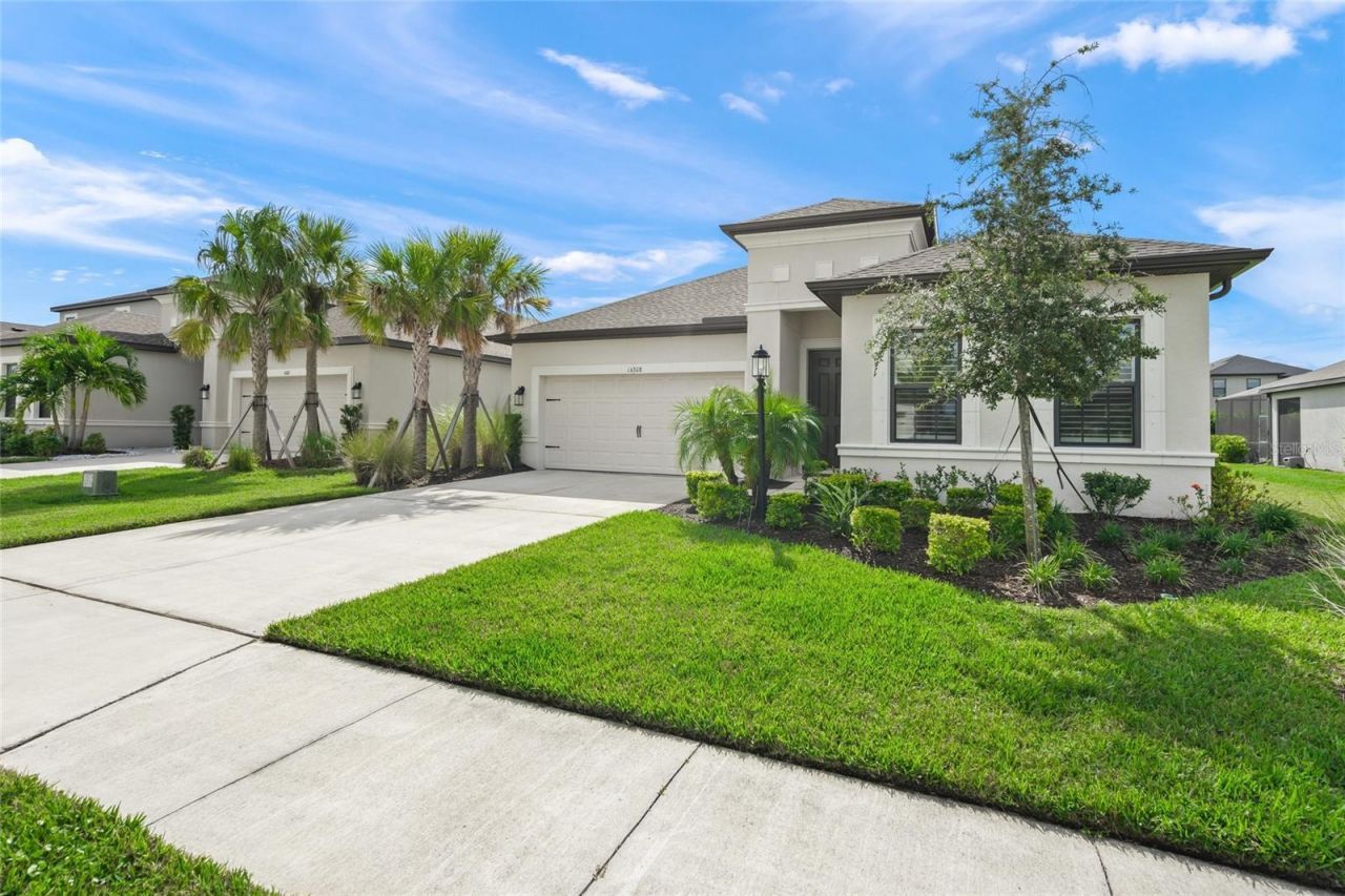 One or more photo(s) has been virtually staged. Built in 2023 by Taylor Morrison, this thoughtfully designed 4-bedroom + office, 3-bathroom home is filled with high-end features and modern finishes.The front guest bedroom offers ample space and privacy, complete with its own bathroom featuring a tub/shower, oversized tile to the ceiling, Quartz countertops, and a dedicated linen closet.The private office is ideally positioned just off the main living area, making it a perfect space for a home office, studio, or quiet den.Two additional guest bedrooms share a well-appointed bathroom, also finished with a tub/shower and oversized tile to the ceiling, Quartz countertops, and a separate linen closet. Adjacent to this space is the laundry room, thoughtfully equipped with a washer, dryer, and built-in cabinetry for added convenience and storage.The upgraded gourmet kitchen is a true highlight, boasting beautiful Quartz counters, an abundance of cabinetry and drawers, GE appliances, a sleek Samsung refrigerator, and additional prep and storage space provided by a butler's pantry and a large walk-in pantry.The expansive great room and dining area accommodate a variety of furniture configurations, while 11-foot sliding glass doors provide abundant natural light and open fully to create seamless indoor-outdoor living.The spacious Owner's Suite is a private retreat featuring a luxurious en-suite bath with a garden tub, upgraded shower, dual Quartz vanities, and an oversized double-decker closet featuring metal hanging rods and integrated shelving.Additional home features include luxury vinyl plank flooring throughout, plantation shutters, gutters, a triple-filter water system, and a powerful 22kW whole-house Generac generator for peace of mind. The expansive 22-foot lanai offers a perfect space to enjoy the pleasant weather, featuring panoramic screening that provides uninterrupted views of the lush, green backyard. Just a short distance away, the community amenities include a tot lot, basketball and volleyball courts, a soccer field, dog park, and a sparkling pool/spa area with a grill-offering something for everyone to enjoy! Located in southeast Manatee County, Park East at Azario has convenient access to shopping, restaurants, schools, and lots of entertainment and recreational choices. Call now to schedule your private showing.