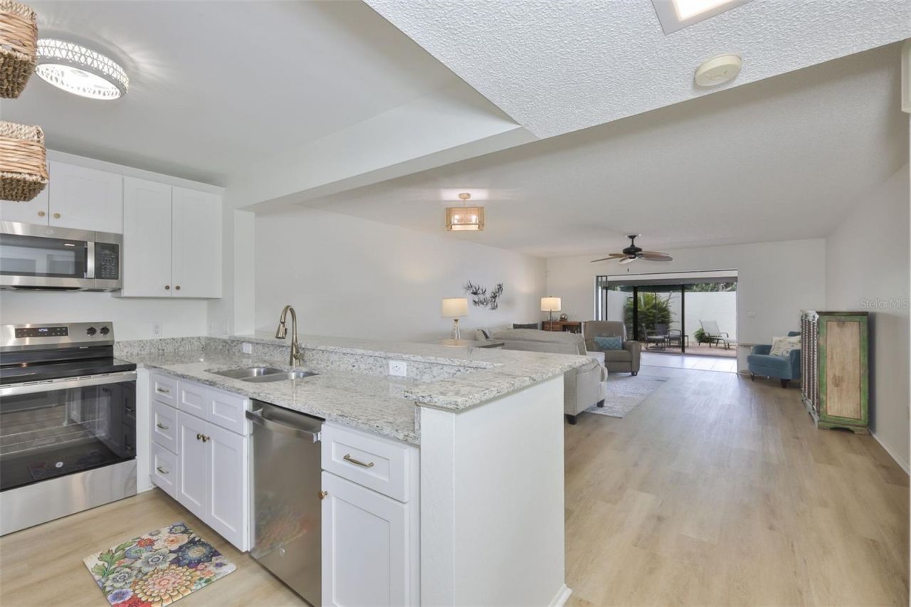 A beautiful lower level condo, end unit, giving you, the new owner more privacy. Comes with covered deeded parking. Completely updated with new kitchen shacker cabinets, granite counter tops and luxury vinyl plank flooring thru out. Both bathrooms have been removated. Newly painted. This units feels like a private villa, with a aalled-in courtyard (25' x 10') with new pavers, just off the glassed-in lanai, for additonal living space. Both bedrooms are en-suites and both have walk-in closets. This community is close to everything you will need for that Florida Lifestyle living. 8 miies to the incredible Island of Anna Maria! Close to shopping, restaurants, theatres, doctors offices and 2 major hospitals. A mere 20 minutes to Sarasota/Bradenton International Airport, 45 Minutes to Tampa Bay International Airport. Management is on-site. Maintenance free living, with low maintenance fees that include water, sewer, pest control, internet service, cable TV and outside maintenance. 7 heated pools, jacuzzi, tennis and pickle ball counrts.
