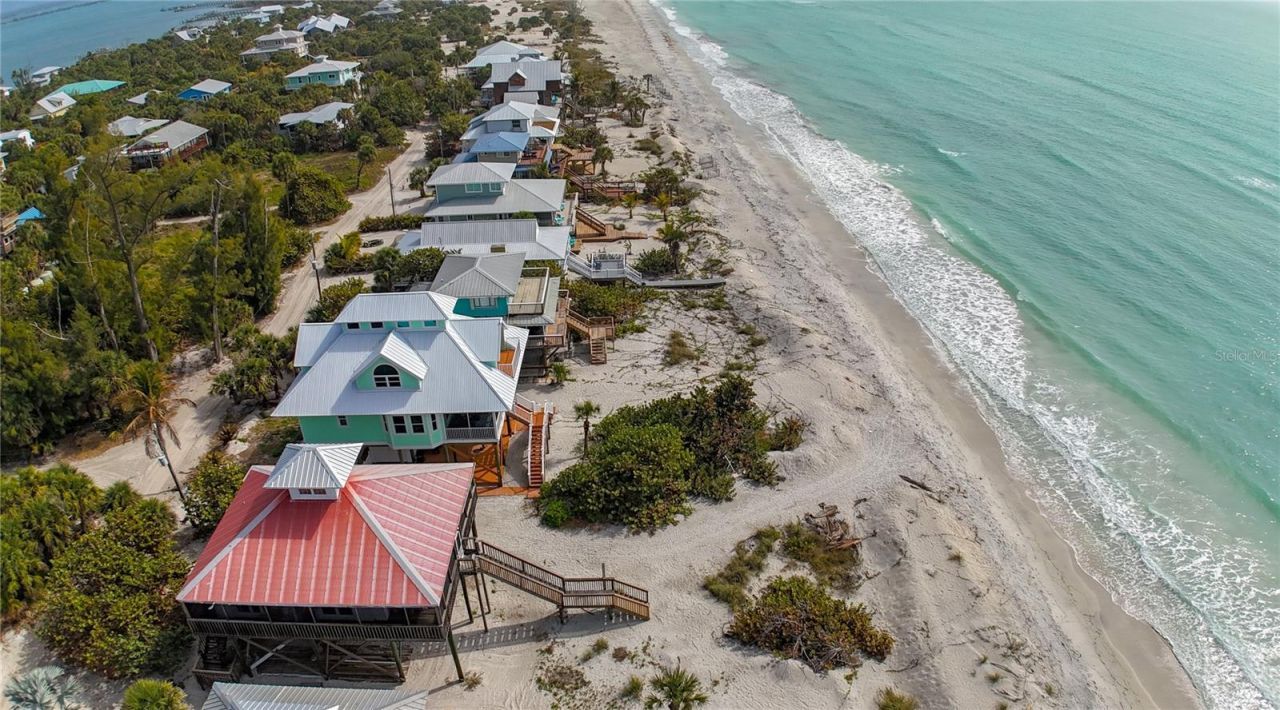 A Classic Beachfront Escape on Little Gasparilla Island! This timeless beachfront cottage offers the best of island living - with the Gulf of Mexico at your front door, 50 x 200 lot, and a community dock on the Bay side! This charming beach getaway is perfectly positioned for ultimate convenience, with effortless beach access. This beloved vacation home has welcomed generations of guests who return time and time again for its nostalgic charm, unbeatable location, and relaxing atmosphere. Inside the Cottage you are greeted by a Spacious Living & Dining Area - Bright and open with a stunning Gulf view, a spacious Kitchen - Outfitted with stone countertops, all the essentials including cookware, dishes, and utensils. An island with seating creates a welcoming space for meals, conversation, and memory-making.*Modern Amenities - Includes a full-size washer and dryer for added convenience. Beach Access just steps away down a sandy pathway winds leading you to a breathtaking stretch of beach with turquoise waters, and miles of unspoiled shoreline.*Outdoor Shower - A convenient open-air rinse area located at the base of the stairs is ideal after a sun-soaked day on the beach or water. Whether you're seeking a quiet retreat, a family beach vacation home, a fishing getaway, or an investment property, this property will not disappoint!.